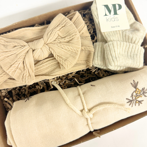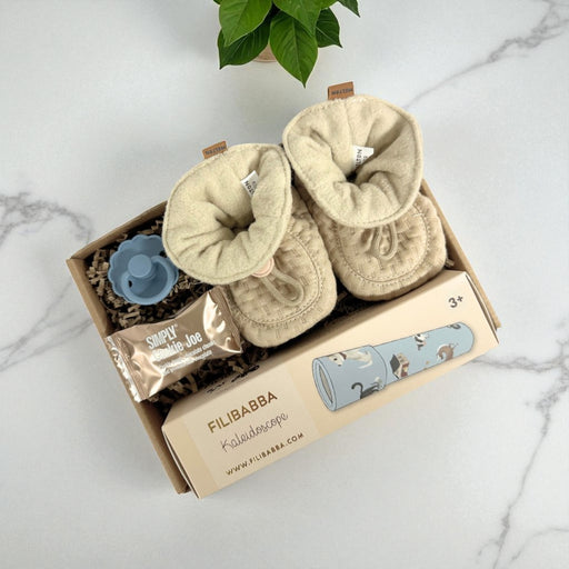 Se hele informationBarselsgave | Beige og blå gave til baby