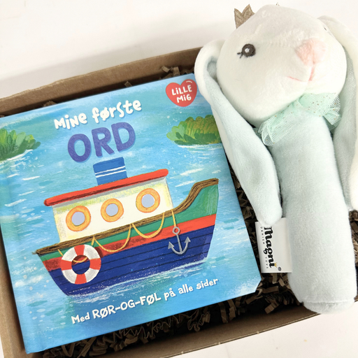 GaestusForkæl det lille nye vidunder med denne sammensatte gave, hvor du finder en sød børnebog og en rangle-bamse. I gaven er der også chokolade til de n...