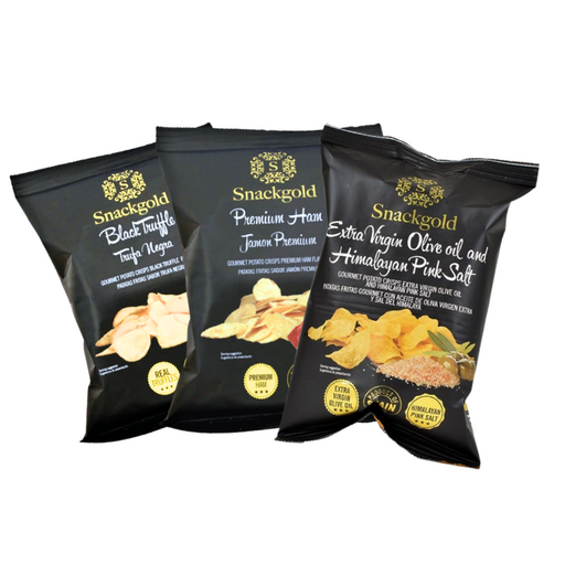 SnackgoldHer får du virkelig lækre og sprøde gourmet chips fra Spanien hvor der ikke er gået på kompromis med kvaliteten. Denne kollektion indeholder: Hi...
