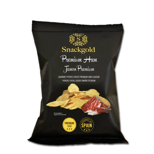 SnackgoldSpanske gourmetchips med smag af Iberisk skinke. Chipsene er fremstillet af nøje udvalgte spanske kartofler af højeste kvalitet. For at opnå de...