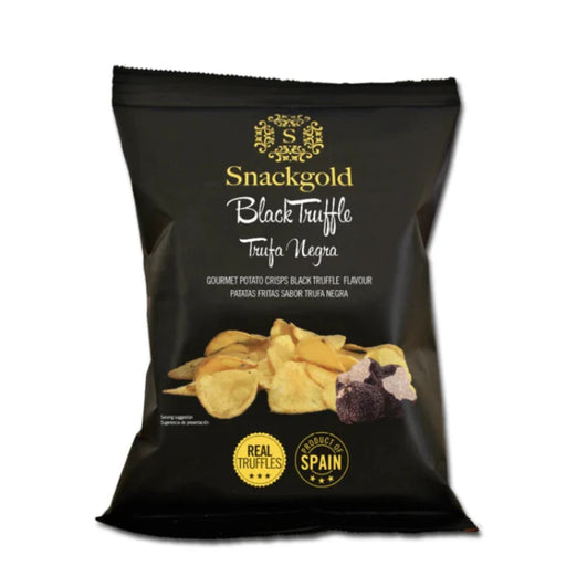 SnackgoldSpanske gourmetchips med sort trøffel. Spanske gourmetchips er fremstillet af nøje udvalgte kartofler af højeste kvalitet. De steges langsomt i...