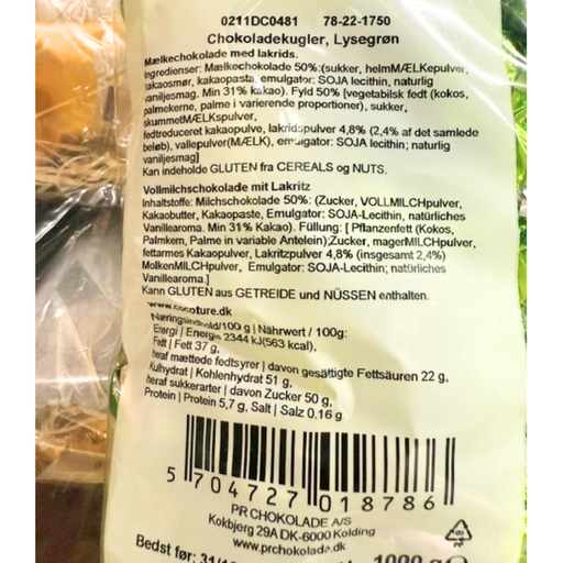 Se hele informationChokoladekugle | Mælkechokolade med lakrids - lysegrøn