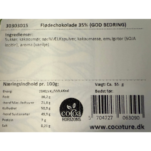 CocotureFlødechokolademed 35% kakao af fineste kvalitet. Indpakning med skriften "GOD BEDRING". Perfekt lækker kvalitetschokolade der passer perfekt i gave...