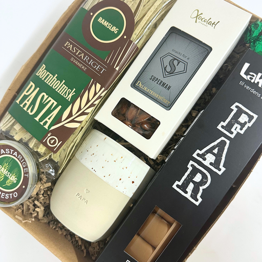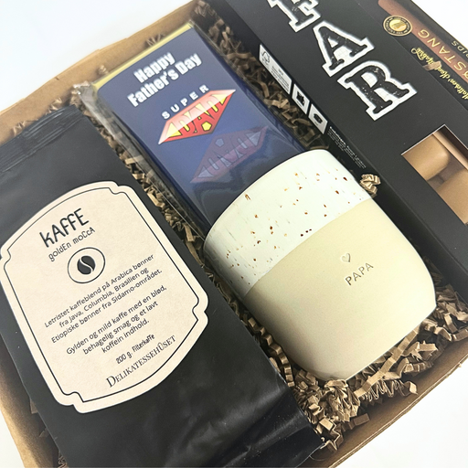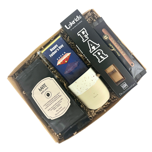 En gave til ham, der har fortjent det bedste. Forkæl din far med en rigtig lækker gaveæske med håndlavet keramikkrus, kvalitetskaffe og lakrids til...