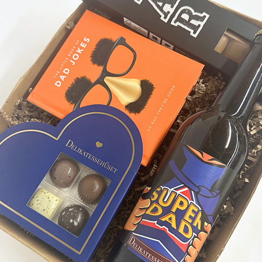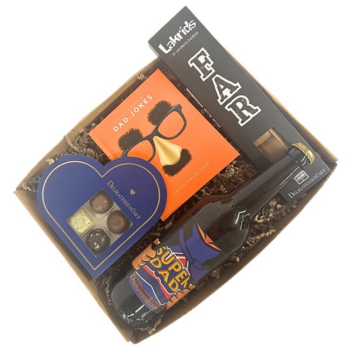 Denne gave er ideel til den sjove far! Gaven indeholder en bog fyldt med far-jokes samt lakrids og øl. Så giv din far en gave hvor han stolt kan fy...
