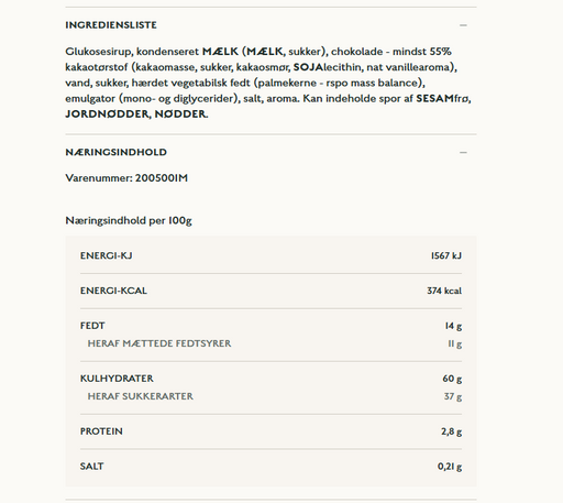 Se hele informationKaramelbar | Fløde med mørk chokolade