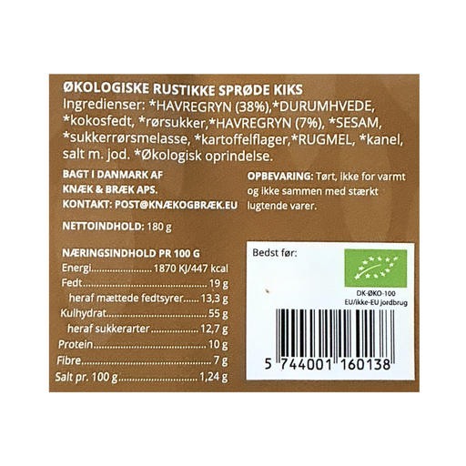 Knæk & BrækSprød fibersnack med Kanel Et sted i Himmerland ligger der et lille bageri, som dagen lang bager knækbrød og kiks - og ikke andet. Knækbrødene er l...