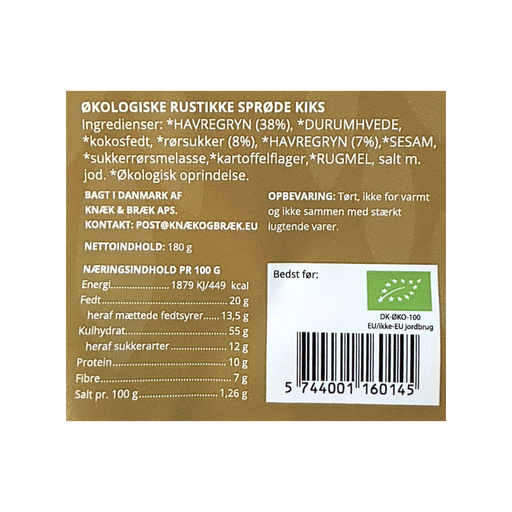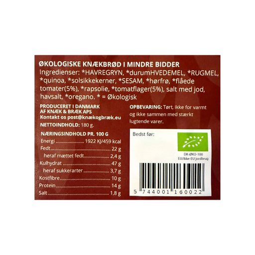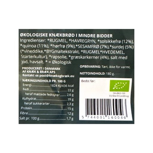 Knæk & Bræk er et dansk bageri, der har specialiseret sig i at lave sprøde fiberrige knækbrød, som passer perfekt til tapas, madpakken, mellemmåltid eller som en sund snack på farten.