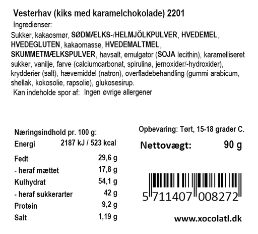 XocolatlLækre kiksekugler med chokolade med havsalt. Kiksekuglerne er i flot emballage, med en livgarde på æsken. 90 g.