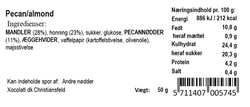 XocolatlBlød og lækker fransk nougat med pekannødder fra Xocolatl Baren måler: 10 × 3,1 × 1,9 cm