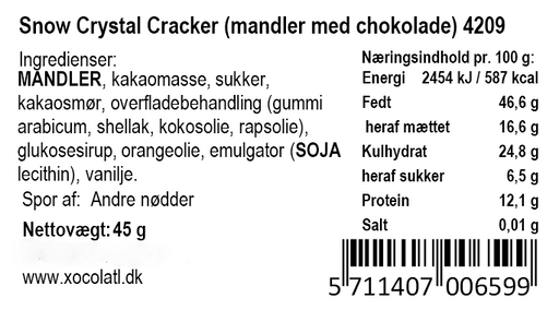 XocolatlSprøde mandler, omsluttet af en sprød chokolade med lakrids fra Xocolatl Det er en himmelsk julesnack, der spreder glæde til hele familien. Den ko...
