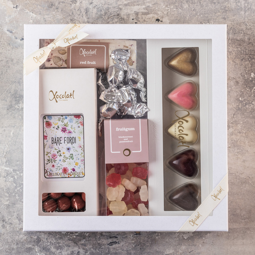 XocolatlDenne æske indeholder 14 fyldte chokoladehjerter fra danske Xocolatl. De indeholder forskellige flydende smagsoverraskelser, heriblandt nougat, flø...