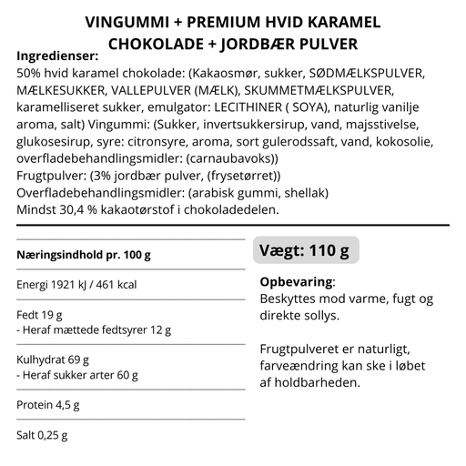 Se hele informationVingummi med karamel chokolade og jordbær. Flowpack - Box the original